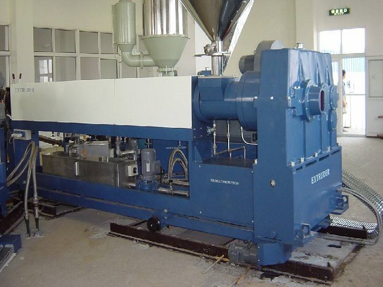 挤塑机有多种不同的型号和规格,最常见的是螺杆挤塑机。塑料经过挤塑机塑化成均匀的熔体,通过螺杆连续地定温、定量、顶压地挤出机头。螺杆转速直接决定生产效率和生产质量,对转速的稳定性要求很高,同时在挤塑机启动时阻力非常大,这就需要电机在低频时候能输出足够大的扭矩。永磁同步电机运转效率和功率因数高,而且具有调速精度高,调速比大,输出特性硬,运转平稳等特点,为此,永磁同步电机越来越广泛应用于挤塑机挤出系统中。